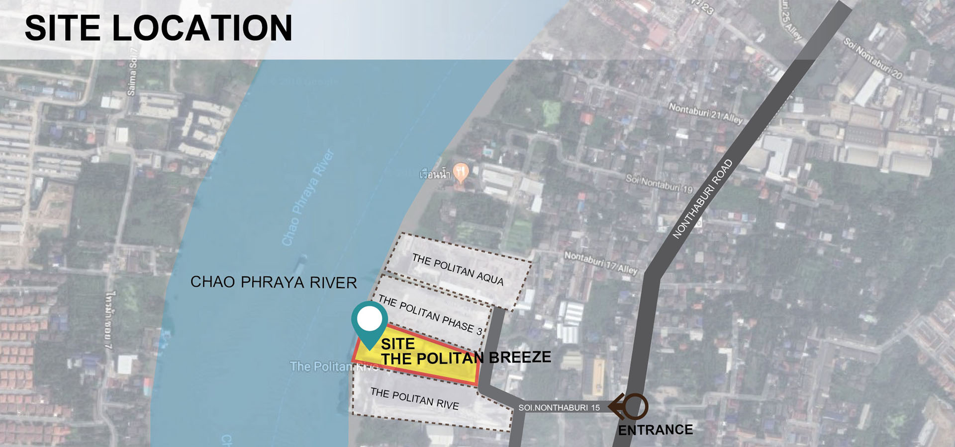 The Politan Breeze is a low-rise residential condominium project along the Chao Phraya River located in Nontaburi within a ten-minutes’ walk to Phra Nang Klao MRT purple line. The existing site condition is used to be an abandoned wood warehouse which was part of a previous wood trade along the river. Nowadays, this section of Chao Phraya River still retains local riverfront settlements and its relationship with local people’s activities such as boating, fishing, and swimming. Politan Breeze has transformed an abandoned space into the new riverfront residential project.